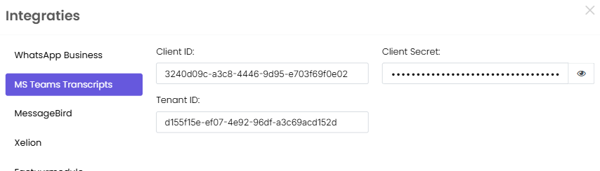 Administration → Integrations → MS Teams transcriptions